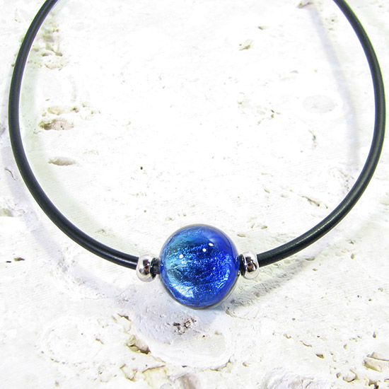 男女共にお使いいただける合皮コードシリーズから、ヨミタンブルーのネックレスをプレゼント!